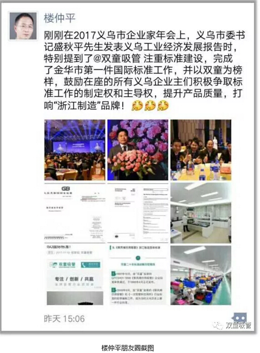 首先,義烏市委書記盛秋平先生發(fā)表了義烏工業(yè)經(jīng)濟(jì)發(fā)展報告,寄語義烏企業(yè)家,要把握機(jī)遇、奮發(fā)勇為,弘揚(yáng)“雞毛換糖”精神,開創(chuàng)新時代新征程,在發(fā)言中還著重點(diǎn)贊了“雙童”的標(biāo)準(zhǔn)創(chuàng)新工作!