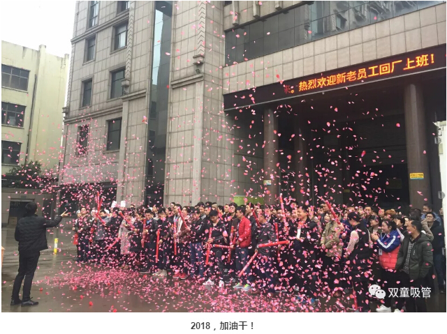 看,我們?nèi)w新老員工匯集在生產(chǎn)廠房的門口,用環(huán)保的禮炮,開始了新一年的努力奮斗!