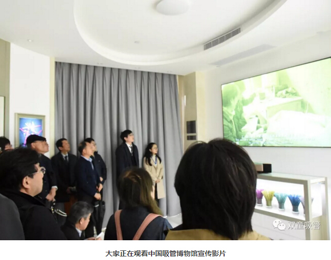 此次,坂本光司老師再次帶隊來到“雙童”參觀,希望能夠影響更多日本企業(yè)主學習“雙童”的人本經(jīng)營模式!首先,在參觀的第一站,吸管妞就帶著參觀團隊來到了中國吸管博物館。大家首先觀看了中國吸管博物館宣傳影片,對吸管上千年的發(fā)展歷史和演變過程有了一個全面的了解!