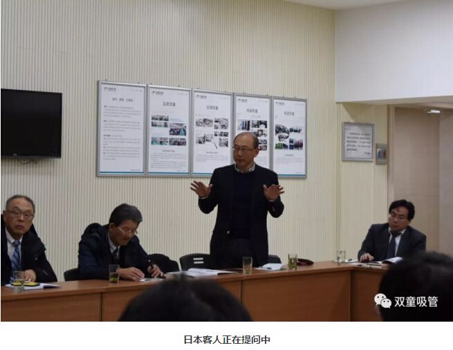 被提問的員工也闡述了自己的看法:“‘雙童’的工作環(huán)境、福利待遇很好,鼓勵員工在公司內部結婚成家、養(yǎng)育小兒、就學安居,形成‘家文化’氛圍,最大程度上解決了我們的后顧之憂!最嚴格的是公司的規(guī)章制度和對產品質量的重視程度,不斷影響我們的內心做出優(yōu)質的產品……” 員工們的回答也引起了日本客人們的陣陣掌聲!