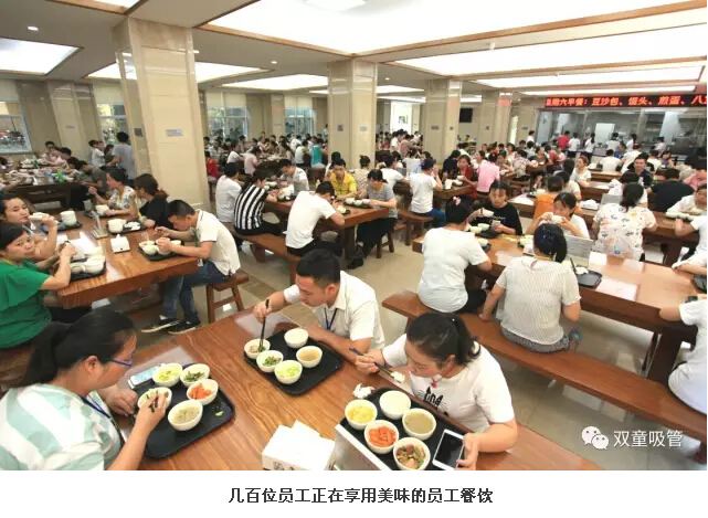 來(lái)到員工餐廳時(shí),大家就被餐廳內(nèi)精致的硬件吸引,表示沒(méi)有想到員工餐廳也會(huì)有如此好的環(huán)境!吸管妞也向同學(xué)們介紹道:“‘雙童’是倡導(dǎo)‘家文化’的企業(yè),不僅為員工提供免費(fèi)餐飲,還提供免費(fèi)住宿。在餐廳,員工每天都能享用出優(yōu)質(zhì)可口的餐飲,我們也鼓勵(lì)員工家屬在餐廳就餐并享受半價(jià)優(yōu)惠!”在聽(tīng)了吸管妞的介紹之后,帶隊(duì)老師幽默地表示“雙童”包吃包住,真是實(shí)現(xiàn)了“共產(chǎn)主義”!