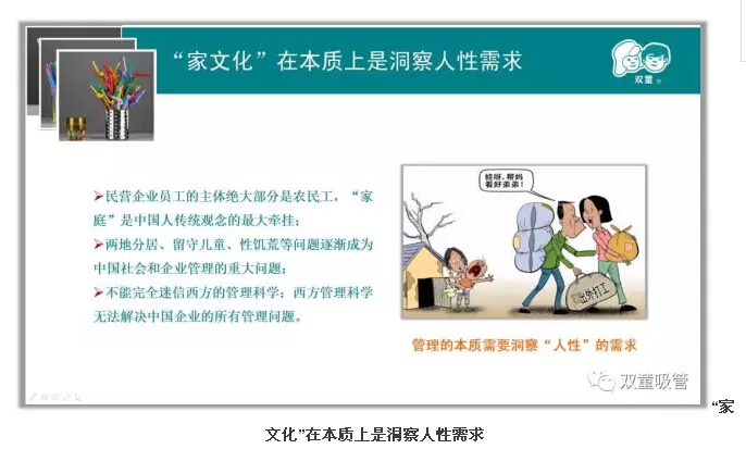 通過(guò)上述事件,“雙童”逐漸認(rèn)知到:“家”是員工最大的牽掛,只有內(nèi)心沒有太多牽掛,情緒沒有太大波動(dòng)的員工,才能生產(chǎn)出優(yōu)質(zhì)產(chǎn)品!正所謂“人心”最難管,員工沒有了后顧之憂,才能全身心投入到工作當(dāng)中,才能做出更加完美精細(xì)的產(chǎn)品!因此,從2005年9月開始,“雙童”明確把“家文化”作為員工管理的著力點(diǎn),以“小家”形成“大家”,凝聚團(tuán)隊(duì)“人心”!