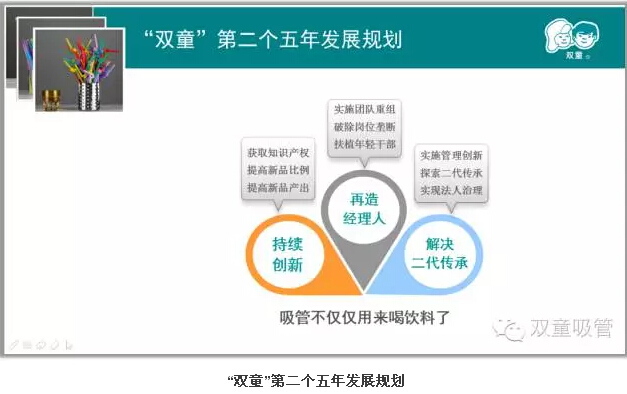 “雙童”公司是我1994年建立的,已經(jīng)22載。2011年,在頒布了公司下一個(gè)《企業(yè)五年發(fā)展規(guī)劃》的同時(shí)我提出“持續(xù)創(chuàng)新,再造經(jīng)理人,解決二代傳承”。