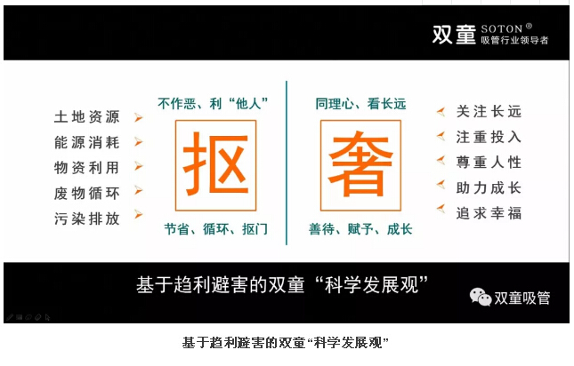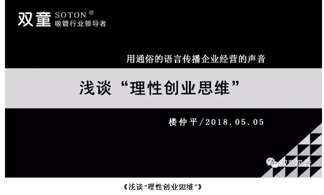 當(dāng)我們透過現(xiàn)象看本源,雙童的“創(chuàng)業(yè)觀”,實(shí)質(zhì)是單點(diǎn)突破、拉大尺度、尋求質(zhì)變、基于長遠(yuǎn)發(fā)展的“理性思維”,實(shí)質(zhì)是“理性思維”下的“科學(xué)發(fā)展觀”!
