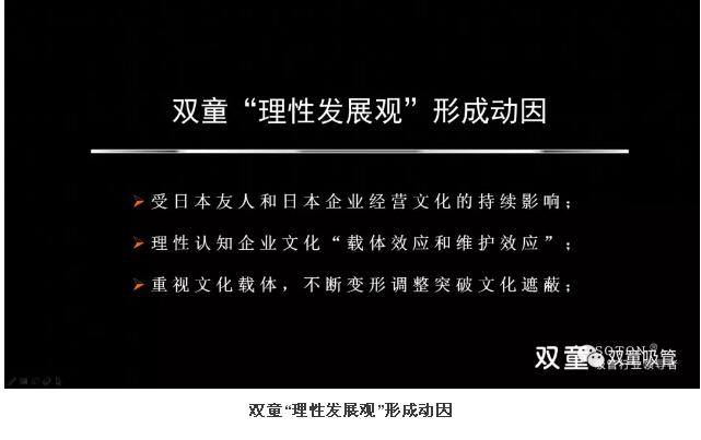 “雙童”之所以有“理性發(fā)展觀”,實(shí)際上是受日本企業(yè)經(jīng)營文化的持續(xù)影響,理性認(rèn)知企業(yè)文化“載體效應(yīng)和維護(hù)效應(yīng)”,重視文化載體,不斷變形調(diào)整突破文化遮蔽!