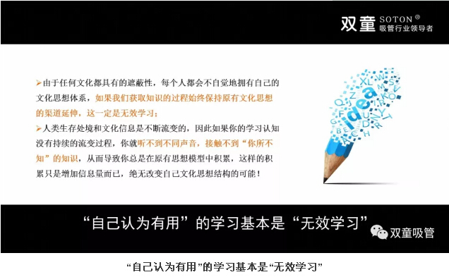 所以,由于任何文化都具有的遮蔽性,每個(gè)人都會(huì)不自覺地?fù)碛凶约旱奈幕枷塍w系。作為創(chuàng)業(yè)者或管理者來講,我們也要不斷調(diào)整自己的思想狀態(tài)和文化結(jié)構(gòu)。如果我們獲取知識(shí)的過程始終保持原有文化思想的渠道延伸,就會(huì)導(dǎo)致我們總是在原有思想模型中積累,這樣的積累只是增加信息量而已,絕無改變自己文化思想結(jié)構(gòu)的可能!