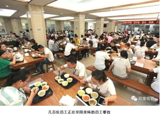 另外,“雙童”的食堂不對(duì)外承包,聘請(qǐng)高級(jí)廚師每天為員工做出優(yōu)質(zhì)可口的餐飲,員工們的餐飲都是三菜一湯的標(biāo)配,全部免費(fèi)哦!同時(shí)鼓勵(lì)員工的家人也一起在餐廳就餐,家屬收取一半的成本費(fèi)用,盡量解決員工在工作之余不再忙于家務(wù)!