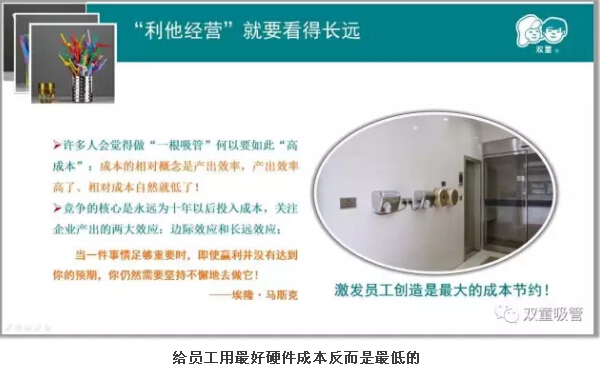 許多來“雙童”的客人都會(huì)問吸管妞一個(gè)問題:“雙童”在資源方面如此“摳門”,又是節(jié)水,又是節(jié)能,為什么要對(duì)硬件配置要求這么高?連一張餐廳里的餐桌都要1.5萬元!用這么高的成本經(jīng)營,至于嗎?“雙童”當(dāng)家人樓仲平曾對(duì)此疑問作回應(yīng):當(dāng)員工用最好硬件時(shí)成本反而是最低的。一向節(jié)省的當(dāng)家人為何會(huì)這么說?今天,吸管妞就從這張餐桌入手,和大家分享一下“雙童”的經(jīng)營理念!