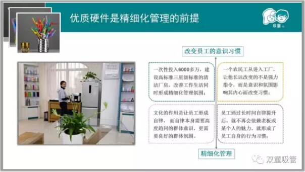 另一方面,“雙童”給員工用五星級(jí)的硬件,也是引導(dǎo)員工改變自身的思維和行為方式,讓員工關(guān)注細(xì)節(jié)!質(zhì)量是用“心”做出來的,通過這樣的氛圍影響員工的內(nèi)心,員工的素質(zhì)和質(zhì)量意識(shí)才能進(jìn)一步提升,有高品質(zhì)的硬件為基礎(chǔ),員工才能生產(chǎn)出高品質(zhì)的產(chǎn)品!看到這里,大家應(yīng)該明白為什么“雙童”的員工餐桌要這么貴了吧!