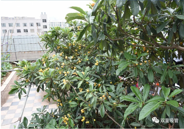 屋頂?shù)蔫凌藰渖宵S橙橙的枇杷掛滿一片,十分誘人!