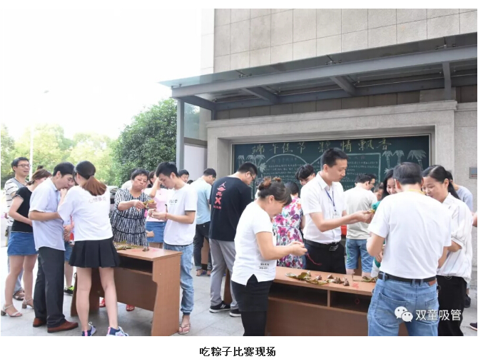 為了讓員工們歡樂地度過這個(gè)端午假期,“雙童”特地舉辦了一個(gè)別開生面的吃粽子大賽!此次吃粽子大賽按部門分為5組,要求團(tuán)隊(duì)之間互動(dòng)配合吃一口粽,用最快速度吃完粽子的團(tuán)隊(duì)即為獲勝(PS:粽葉要保持完整和基本干凈哦)!
