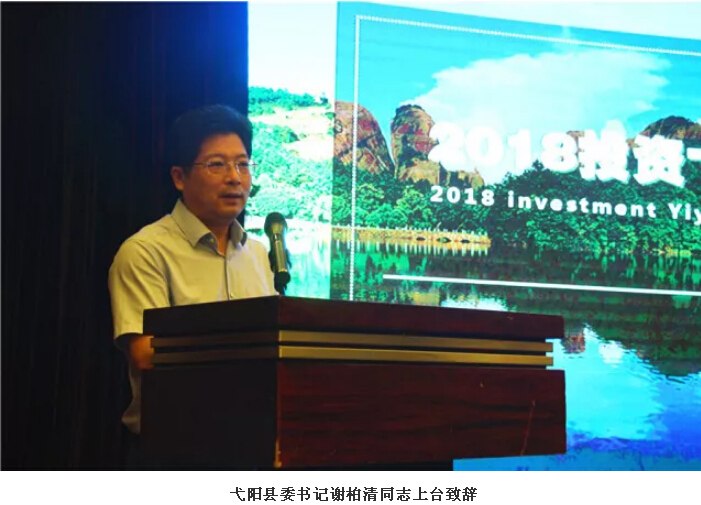 活動(dòng)開(kāi)場(chǎng)后,弋陽(yáng)縣委書(shū)記謝柏清同志上臺(tái)致辭,并介紹了弋陽(yáng)縣的基本情況,宣傳和推介了弋陽(yáng)縣主導(dǎo)產(chǎn)業(yè)的投資發(fā)展具體情況。他由衷希望能夠促進(jìn)各類要素和創(chuàng)新資源向弋陽(yáng)集聚,并誠(chéng)摯邀請(qǐng)各位嘉賓到弋陽(yáng)走一走、看一看,領(lǐng)略青山綠水的魅力,尋找投資合作的機(jī)遇、開(kāi)拓互利共贏的領(lǐng)域。