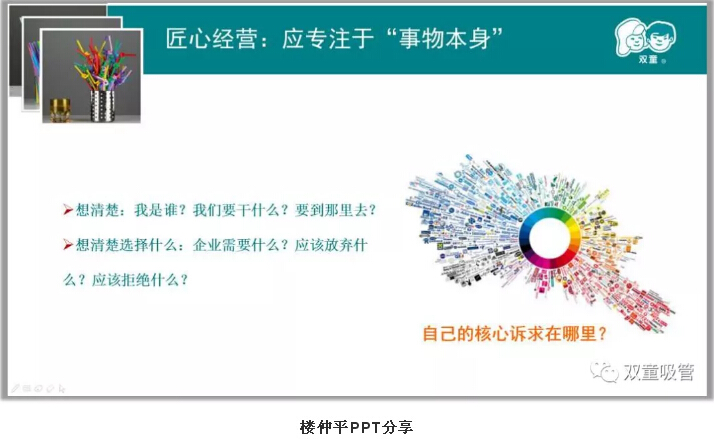 接下來(lái),樓仲平分享道:“雙童”堅(jiān)持了25年的制造業(yè),25年做一根吸管在大多數(shù)人眼中是沒(méi)有花頭的。但事實(shí)證明,只要你努力,不起眼的小商品也可以做到幾個(gè)億的產(chǎn)值,也可以繳納上千萬(wàn)的稅收。如果你從事了制造業(yè),千萬(wàn)不要輕易放棄。改革開(kāi)放三十多年,經(jīng)歷了一波一波的S曲線,創(chuàng)業(yè)者要跳開(kāi)眼前的表象,要去理解事物的本質(zhì),在積累和堅(jiān)持的過(guò)程當(dāng)中拉大尺度,要看得更加長(zhǎng)遠(yuǎn),才能不受外部環(huán)境變化而影響自身,把制造業(yè)做好!