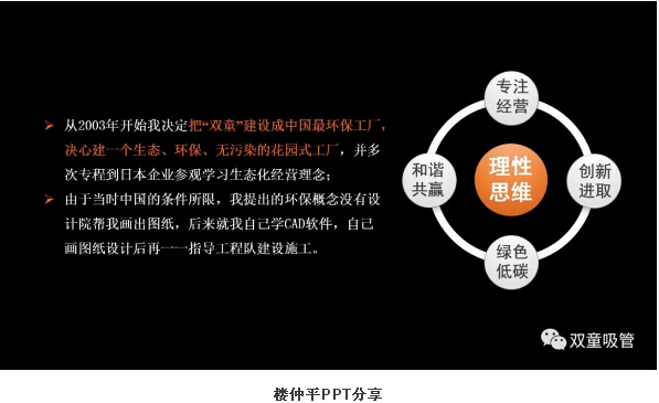 很多來“雙童”參觀的客人們,都會(huì)驚嘆于我們這座零排放無污染的生態(tài)節(jié)能工廠,并不斷追問:“到底是哪家建筑設(shè)計(jì)公司給你們設(shè)計(jì)的廠房?”每當(dāng)此時(shí),吸管妞都會(huì)自豪地回答:“其實(shí)都是我們當(dāng)家人樓總自己設(shè)計(jì)的廠房!”那么,早在十多年前,整個(gè)社會(huì)環(huán)境都沒有倡導(dǎo)節(jié)能環(huán)保理念的當(dāng)時(shí),“雙童”樓仲平為何會(huì)選擇帶領(lǐng)企業(yè)走這條發(fā)展道路呢?這背后也有一個(gè)精彩的故事。下面,吸管妞就借“雙童”樓仲平在浙江大學(xué)授課時(shí)的一段視頻,揭秘其中的奧秘!
