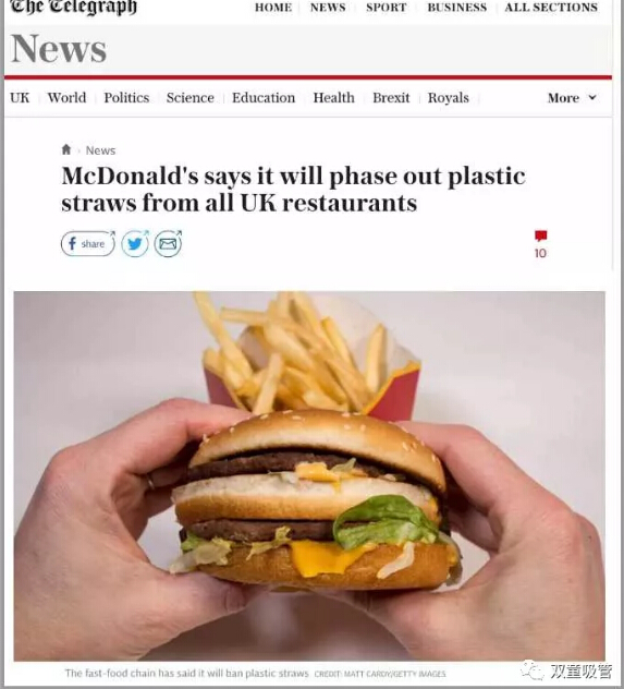 近日,麥當(dāng)勞要停用塑料的新聞引起巨大轟動(dòng)。據(jù)媒體報(bào)道:麥當(dāng)勞宣布從今年5月開(kāi)始,1300多家麥當(dāng)勞開(kāi)始停用塑料吸管,試用紙質(zhì)吸管!這項(xiàng)計(jì)劃將從英國(guó)麥當(dāng)勞開(kāi)始實(shí)行!麥當(dāng)勞英國(guó)首席執(zhí)行官PaulPomroy在接受采訪時(shí)說(shuō),麥當(dāng)勞使用的塑料吸管其實(shí)是可回收的,但越來(lái)越多的消費(fèi)者覺(jué)得用塑料吸管對(duì)環(huán)境不好,顧客方面的督促讓麥當(dāng)勞最終做出了這樣的決定?!半p童”意識(shí)到:塑料產(chǎn)業(yè)面臨徹底顛覆,吸管產(chǎn)品的行業(yè)革命已經(jīng)來(lái)襲!