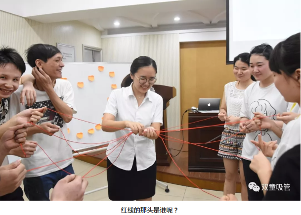在暖場活動(dòng)結(jié)束之后,就是配對環(huán)節(jié)啦!如何配對呢?當(dāng)然要用上“紅繩”,讓姻緣一線牽,抽到同一根紅線的單身男女配為一組哦!