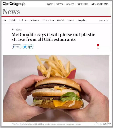 今年3月,麥當(dāng)勞宣布不再在英國(guó)門店中使用塑料吸管。