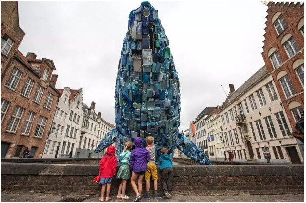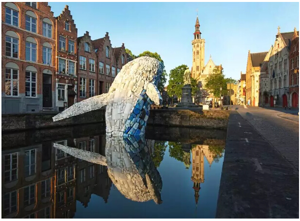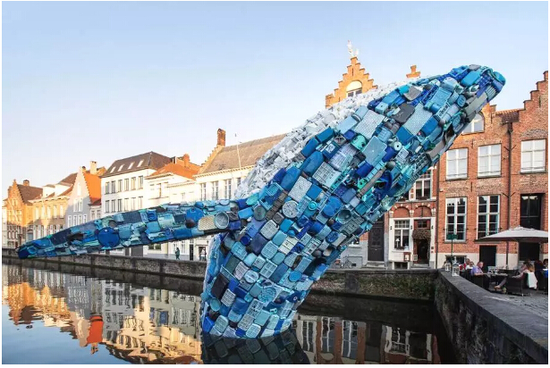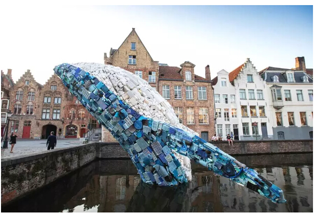 該作品以躍姿鯨魚(yú)的被安置在比利時(shí)城市的主要運(yùn)河中供游客參觀,這一令人印象深刻的裝置作品旨在讓人們關(guān)注海洋中數(shù)量巨大的塑料廢棄物等海洋垃圾壞境問(wèn)題。