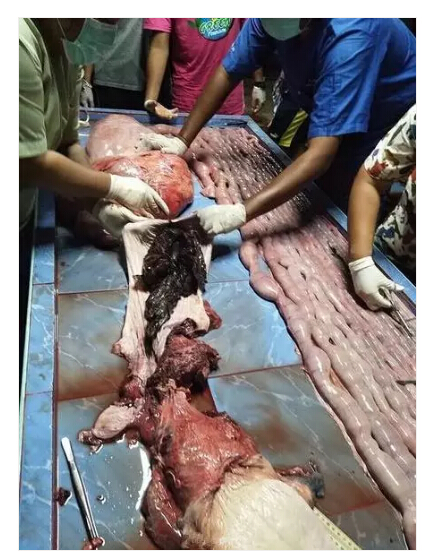 這只小領(lǐng)航鯨艱難吐出5個(gè)塑料袋,