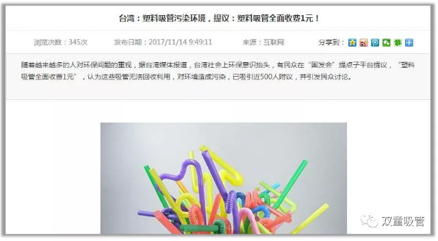 而臺灣媒體也報道,有民眾在“國發(fā)會”提點子平臺提議,“塑料吸管全面收費1元”,因為這些吸管無法回收利用,對環(huán)境造成污染,這一點子引發(fā)民眾熱烈討論……