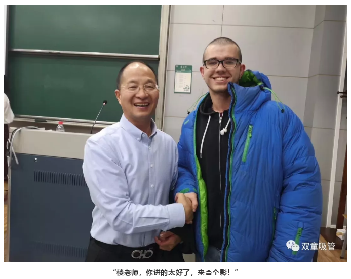 講完課后一位外國(guó)帥哥竟主動(dòng)上前和樓總說(shuō):樓老師,你講的真好!我大部分都能聽(tīng)懂!最后,樓總也和這位洋學(xué)生來(lái)了個(gè)大合影!