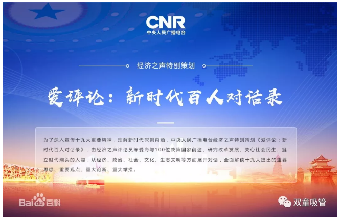 近日,中央人民廣播電臺經(jīng)濟(jì)之聲播出《愛評論:新時(shí)代百人對話錄》改革開放四十周年特輯。其中,也播出了經(jīng)濟(jì)之聲首席評論員陳愛海對話“雙童”樓仲平的專訪節(jié)目!