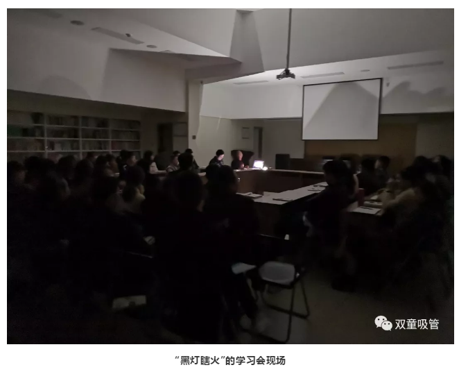 原來,是在“雙童”學(xué)習(xí)會(huì)現(xiàn)場(chǎng),突然碰到了停電的情況。