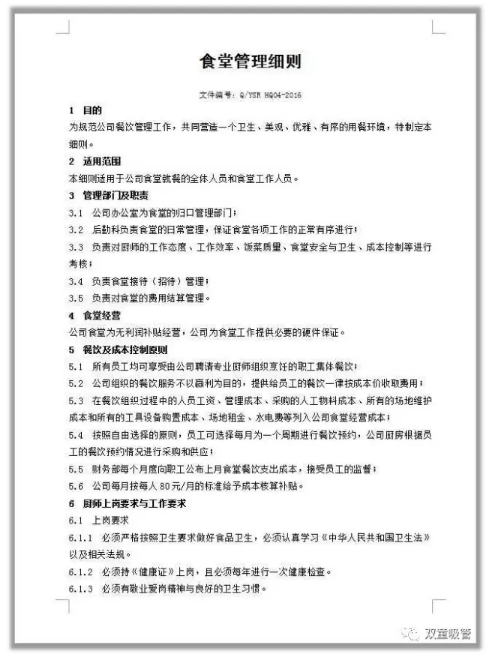 “雙童”食堂管理細(xì)則,涉及到餐飲管理的各個(gè)方面