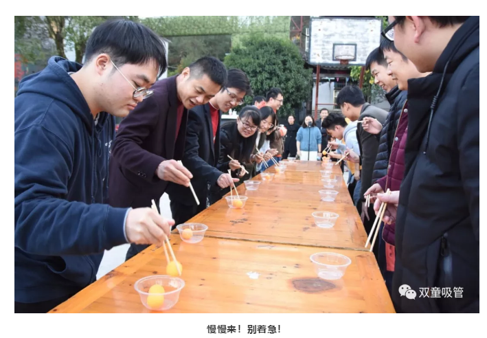 咦!這是發(fā)生了什么?原來(lái),這是“雙童”人在一起在做團(tuán)建熱身活動(dòng)——搶礦泉水呢!