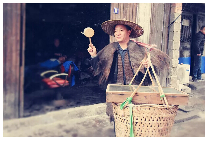 挑貨郎擔(dān)只在春節(jié),平常沒的挑,通常臘月二十左右走,元宵前回來。每天挑一百多斤的東西,走幾十公里山路,晚上十點(diǎn)鐘回家,腳上都是磨爛的血泡,遇上下雨天就渾身濕透。到了城市,城里人看不起我們,臟兮兮,人家不喜歡,年輕人老是欺負(fù)你、戲弄你。