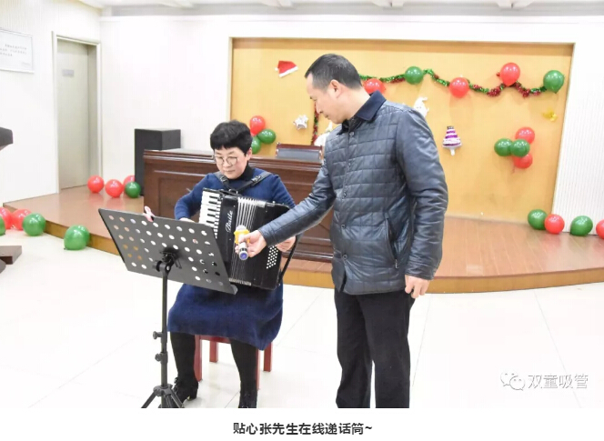 吃飽喝足后,我們的大招就要上線啦!聽,是手風(fēng)琴的聲音!進出口公司的張總和他的夫人宋女士手風(fēng)琴“匯報演出”震撼登場!《鴻雁》、《賣報歌》、《紫竹調(diào)》……一曲接著一曲,樂聲美妙,讓人沉醉!