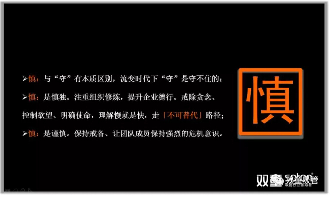 流變時(shí)代下,“守”是守不住的。“慎”,對企業(yè)來說是要認(rèn)識到這個(gè)時(shí)代給我們帶來的巨變沖擊,并知道自己的不足和短板。所以,“慎”是保持謹(jǐn)慎、戒備和危機(jī)。