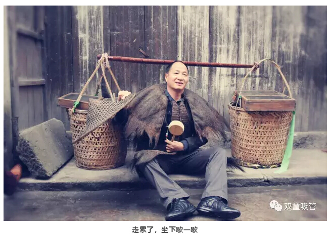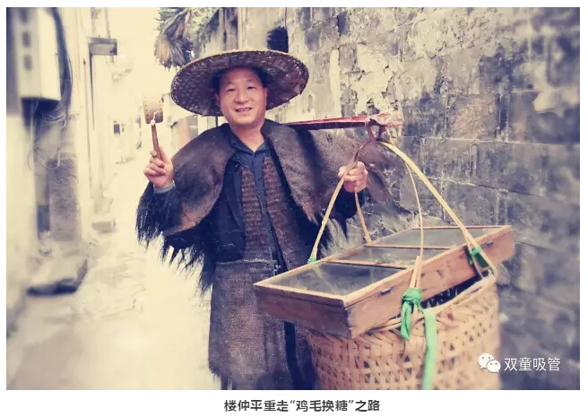 這是“雞毛換糖”人挑貨郎擔(dān)的場景……