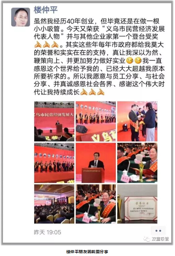 通過25年的堅持,用科技創(chuàng)新的思維把大家都認為“不可能”變成了“可能”。把一個微不足道的小小吸管做成了義烏歷史上第八件“中國馳名商標”,把“雙童”品牌做成了全球吸管行業(yè)的領導者。樓仲平至今也是保持著初心不變,帶領“雙童”為持續(xù)推動義烏的發(fā)展做貢獻。