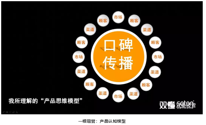 讓員工們自身對“產(chǎn)品”和“商品”有所思考之后,樓仲平以“一根吸管”為例,詮釋了全新思維的“產(chǎn)品認知模型”: