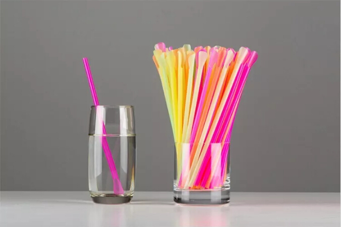 一只塑料袋,一根塑料吸管,
