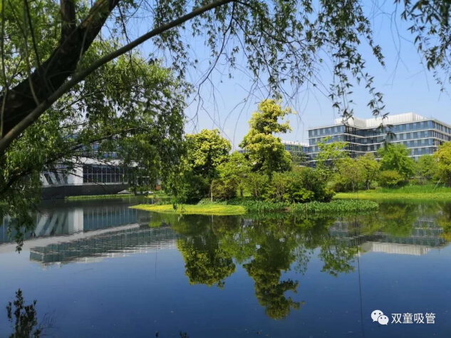 離開辦公區(qū),漫步在園區(qū)內(nèi),建筑、樹木倒影在水中,景色真是太美了!