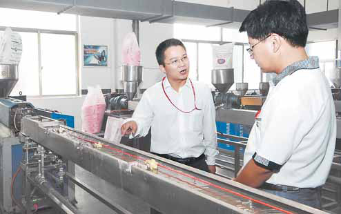 在雙童的生產(chǎn)工藝流程中,有這樣一個(gè)環(huán)節(jié),叫做原料經(jīng)過(guò)高溫?cái)D出吸管,“擠”出來(lái)的吸管需要用水來(lái)冷卻。過(guò)去,企業(yè)多用自來(lái)水對(duì)吸管進(jìn)行冷卻,冷卻以后,這些50 多度的熱水便被作為廢水進(jìn)行直接排放。也就是說(shuō),車(chē)間一邊進(jìn)自來(lái)水,一邊又馬上把冷卻水當(dāng)廢水放掉了。毫無(wú)疑問(wèn),這對(duì)用水量很大的雙童公司來(lái)說(shuō),是一筆不小的成本投入。善于精打細(xì)算的樓仲平自然不甘做這種賠本生意,經(jīng)過(guò)摸索,經(jīng)濟(jì)驅(qū)動(dòng)力催生出一套他自行研發(fā)設(shè)計(jì)的“工業(yè)循環(huán)用水回用系統(tǒng)”:在生產(chǎn)上, 50 多度的冷卻水通過(guò)冷卻塔降到常溫,再抽回車(chē)間,二次行使冷卻吸管的重任。它的功效在哪里?可以打個(gè)比方:假如企業(yè)擴(kuò)大規(guī)模后車(chē)間設(shè)備增加3 倍,那么沿襲一次性排放,用水量也是直接增加3 倍;而采用循環(huán)用水,企業(yè)用水量卻只增加1 倍。效果立時(shí)可顯?!耙皇B(niǎo)”、“一箭雙雕”、“一舉兩得”,用怎樣的語(yǔ)言來(lái)形容這個(gè)“水循環(huán)系統(tǒng)”都不為過(guò)。因?yàn)?,除了生產(chǎn),“水循環(huán)系統(tǒng)”還有一個(gè)更大的妙用,這就是:一個(gè)“熱水回用”給員工洗澡解了天大的難題—— — 冷卻水吸收過(guò)吸管中的熱量后,可使水溫達(dá)到約50 多度,公司便“順手牽羊”把部分冷卻水抽到員工衛(wèi)生間,作為洗澡熱水使用。“不說(shuō)別的,員工洗澡不用再受制于‘煙熏火燎’的鍋爐了!單就這一點(diǎn),想想就覺(jué)得爽氣?!睒侵倨降脑?huà)語(yǔ)里,透著一種喜不自禁。他也確實(shí)有值得高興的理由:過(guò)去,職工洗澡用水都是靠燒煤鍋爐供給員工洗澡水時(shí),不但需要專(zhuān)門(mén)的堆煤場(chǎng)和煤渣堆場(chǎng),“晴天揚(yáng)塵,雨天濁流”,環(huán)境污染嚴(yán)重,而且,耗費(fèi)不菲—— — 一個(gè)鍋爐,平均每年用煤60 噸;需專(zhuān)門(mén)配備持證鍋爐工,每年一鍋爐工工資即需5 萬(wàn)元。