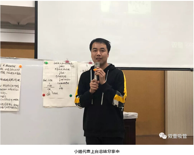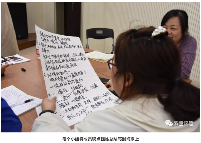 以上片段,是“雙童”第274期行政學(xué)習(xí)會(huì)上復(fù)盤學(xué)習(xí)的精彩視頻。在當(dāng)天的學(xué)習(xí)會(huì)上,所有同學(xué)被分為7個(gè)小組,每位成員開動(dòng)腦筋,總結(jié)提煉出本小組觀點(diǎn)后派代表分享,從而和其他小組成員進(jìn)行思想交流和思維碰撞!
