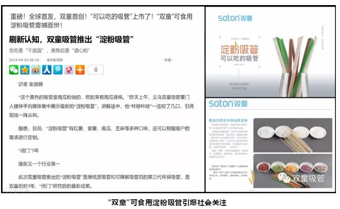 今年4月,歷經(jīng)三年潛心研發(fā),“雙童”可食用淀粉吸管震撼面世,突破了上述局限和問(wèn)題的同時(shí),還對(duì)環(huán)境十分友好,完全無(wú)污染!