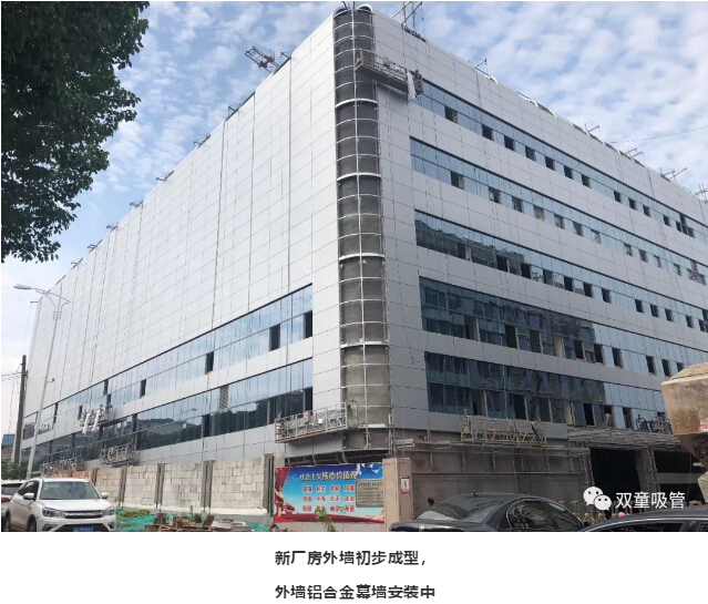 “雙童”二期智能化工廠按高規(guī)格的商業(yè)建筑等級設(shè)計,在大樓的外墻材料選擇上,“雙童”選擇了高等級的鋁合金幕墻材料,鋼性好、重量輕、強度高,耐腐蝕性。如今,廠房外墻已初步成型,工人正在安裝鋁合金幕墻和窗戶,施工完畢后將更具現(xiàn)代感和科技感!
