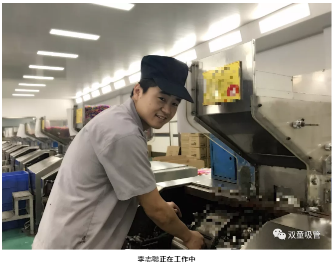 李志聰,來自安徽蚌埠懷遠的一位年輕小伙子。2008年,年滿18歲的李志聰經(jīng)老鄉(xiāng)介紹來到“雙童”,在二車間從事理管的工作。在做了一年多的理管工作之后,李志聰又接觸了加管崗位,對“吸管”有了更深的了解。