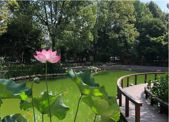 景觀湖上荷花綻放,景觀湖下暗藏中水儲存池。在這個荷花盛開的季節(jié),每位員工都可以體驗到“一步一景”的美妙,感覺到美好環(huán)境帶來的愉悅,真是妙哉!