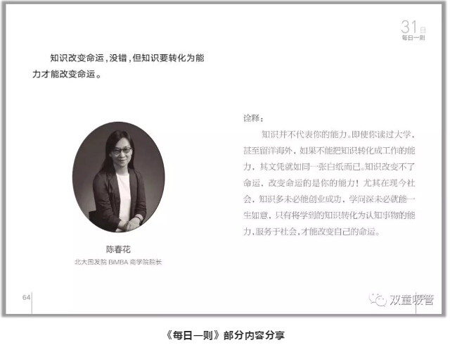 這本《每日一則》里,共收錄了31句名人經(jīng)典語錄,以月度為單位讓員工進行重復(fù)誦讀,內(nèi)容包含了專注、創(chuàng)新、共贏、正氣等主題。這可是員工們從幾千條好句里挑出來,并且自己解析的呢!