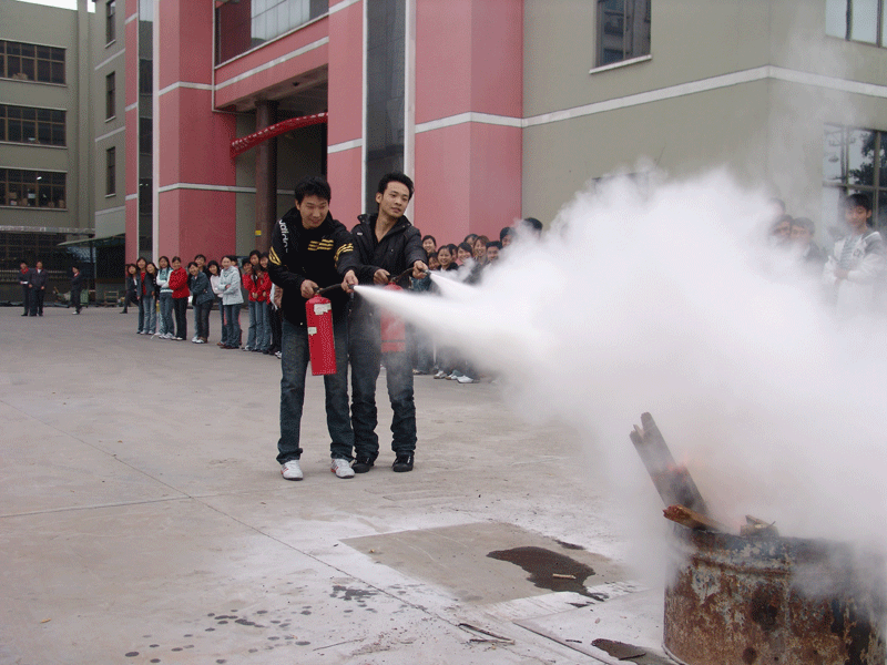 上圖為員工使用干粉滅火器進(jìn)行滅火比賽現(xiàn)場