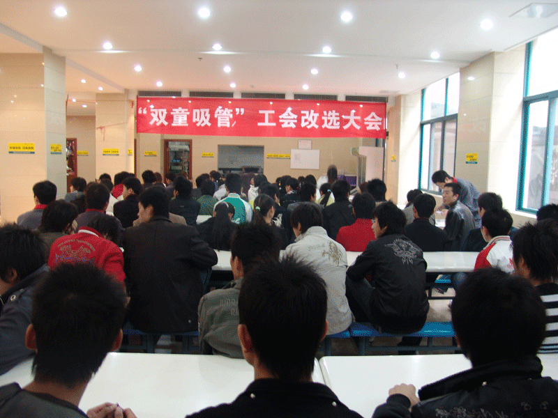2007年11月16日下午,公司召集全體員工在公司食堂召開工會改選大會,會議由工會主席張國俊副總主持,張主席對公司從2002年12月1日工會成立以來工會所做工作向全體員工進行了詳細的報告。因為人員有所變動,按照工會法規(guī)定5年一屆的工會需要重新進行改選,張主席對工會法和工會代表選舉規(guī)程做了介紹,通過上午的職工代表大會選舉產(chǎn)生76名代表,大會一致通過由76名職工代表擔任工會代表。并表示對次名單進行公布3天,如果有異議的還可以向工會提出意見。