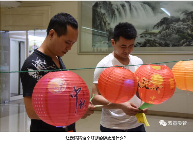 除了月餅等必備福利之外,“雙童”文宣科特地舉辦了一場猜燈謎活動(dòng)。據(jù)了解,猜燈謎不僅有悠久的歷史,也有著深厚的文化底蘊(yùn),燈謎藝術(shù)融知識(shí)性和趣味性于一體,倍受人們喜愛!