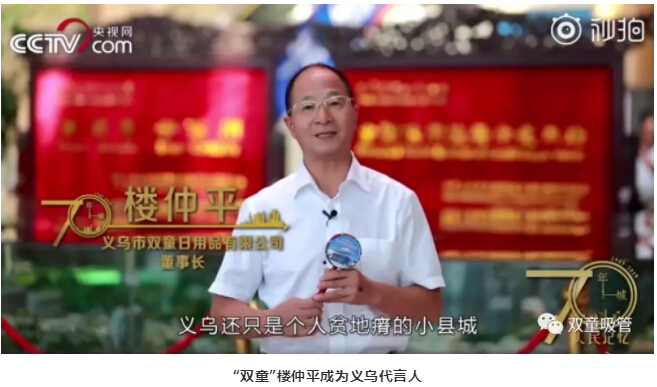 “雙童”樓仲平作為義烏行業(yè)代表人物登上《人民記憶·70年70城》節(jié)目,在節(jié)目中分享了義烏靠著走南闖北的“雞毛換糖”,用手搖撥浪鼓叩開了義烏的開放之門!快來看看吧!