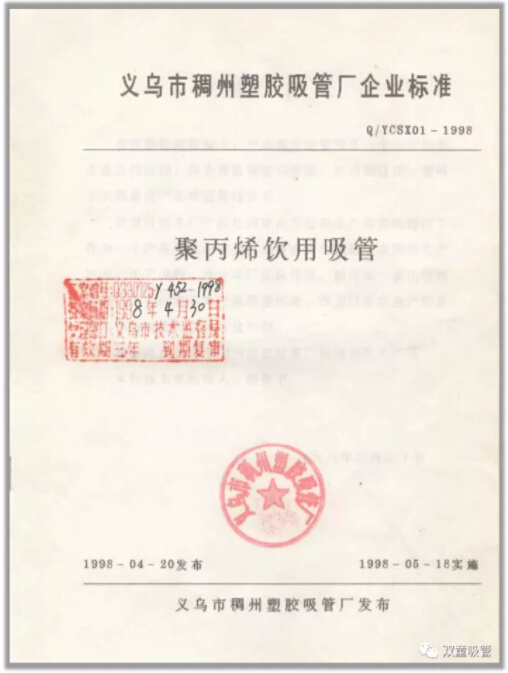義烏市稠州塑膠吸管廠起草的企業(yè)標準正式發(fā)布