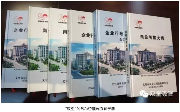 2005年開始,“雙童”陸續(xù)推行了《企業(yè)衛(wèi)生管理手冊》、《寢室管理大綱》 和《企業(yè)行政管理手冊》、《崗位考核大綱》等一系列衛(wèi)生和作業(yè)規(guī)范文件,逐步轉(zhuǎn)向精細化管理。